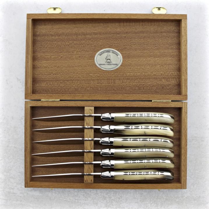 | CLAUDE DOZORME SARL | LAGUILOE STEAK KNIVES RAM HORN HANDLE SET/6 | 65SER56150 | $1000.00 |